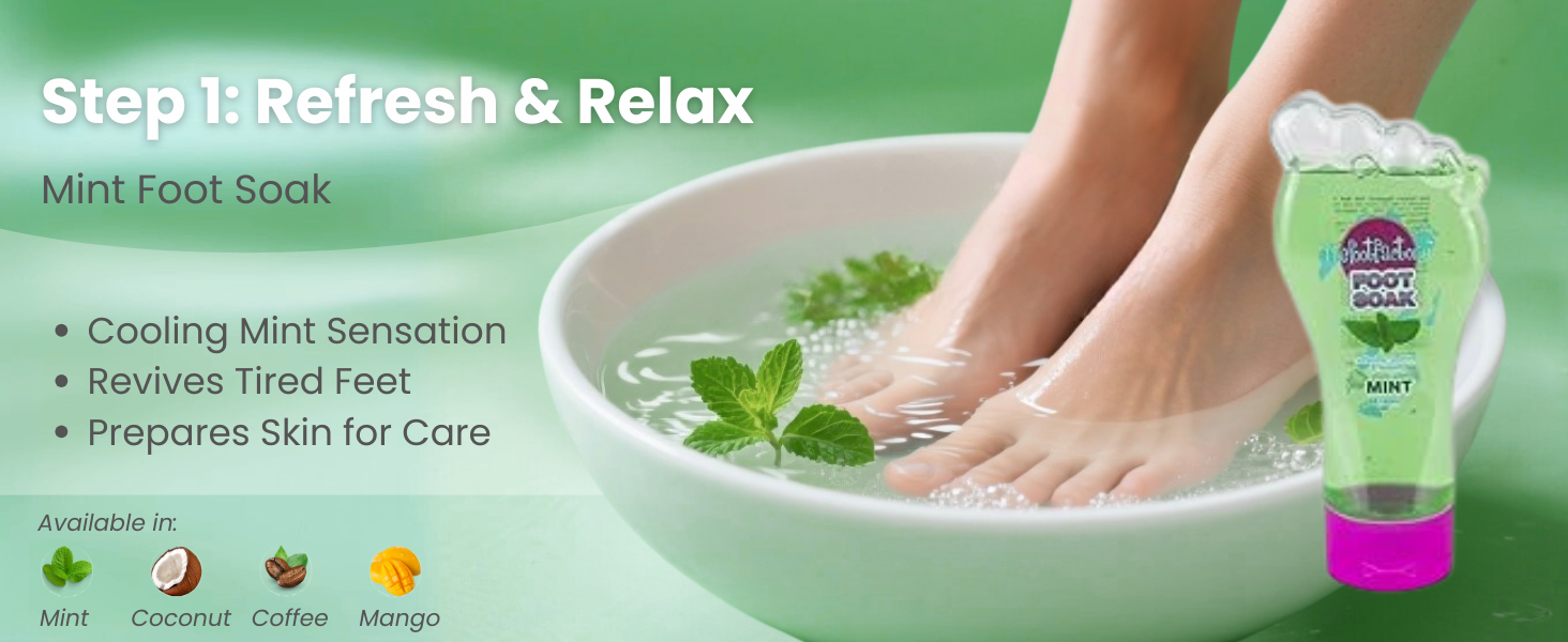 - Soak: Add Foot Soak to warm water and soak feet for 10–15 minutes.