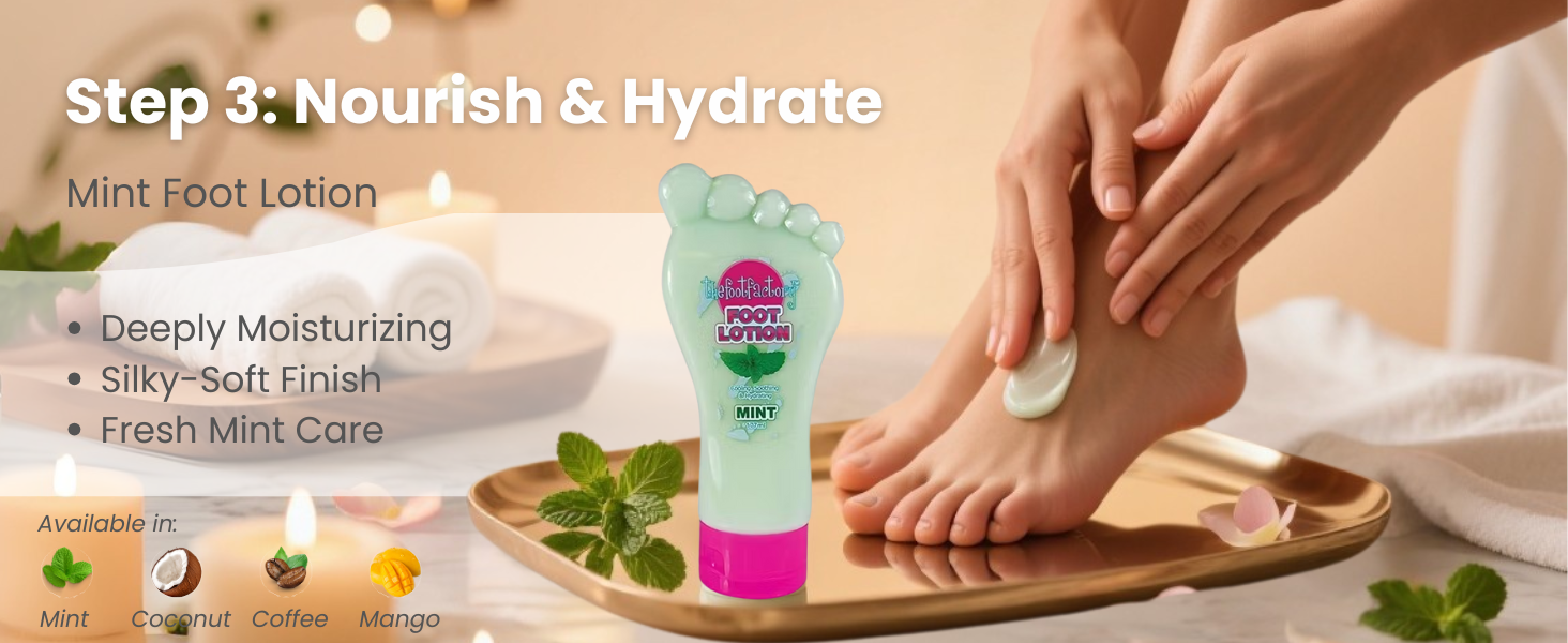 - Moisturise: Apply Foot Lotion generously to lock in hydration.
