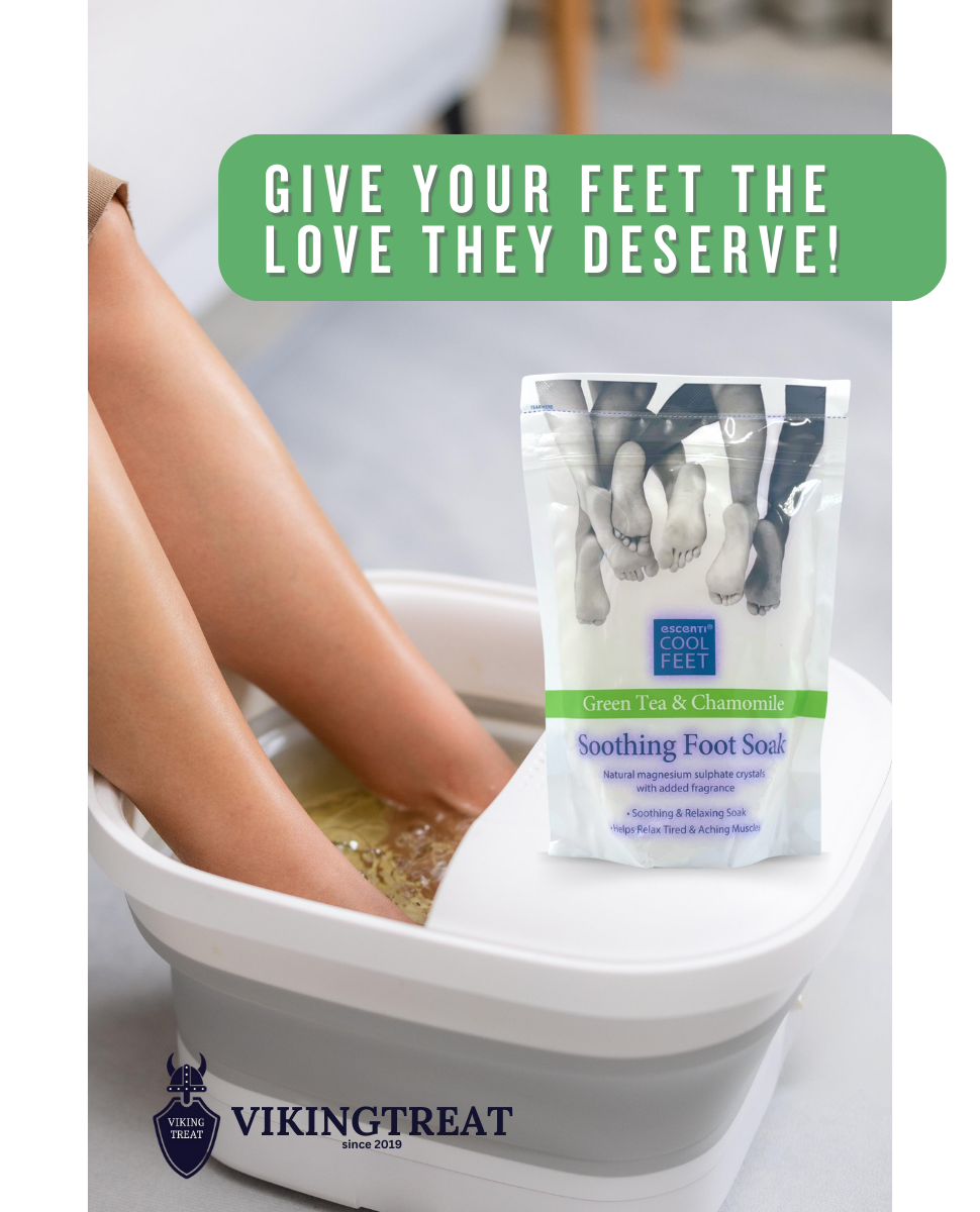 Pamper your feet anytime, anywhere with this portable, foldable foot spa bath tub. Crafted from durable plastic and silicone, it ensures long-lasting use, while the soothing Green Tea & Chamomile foot soak solution relaxes and rejuvenates.