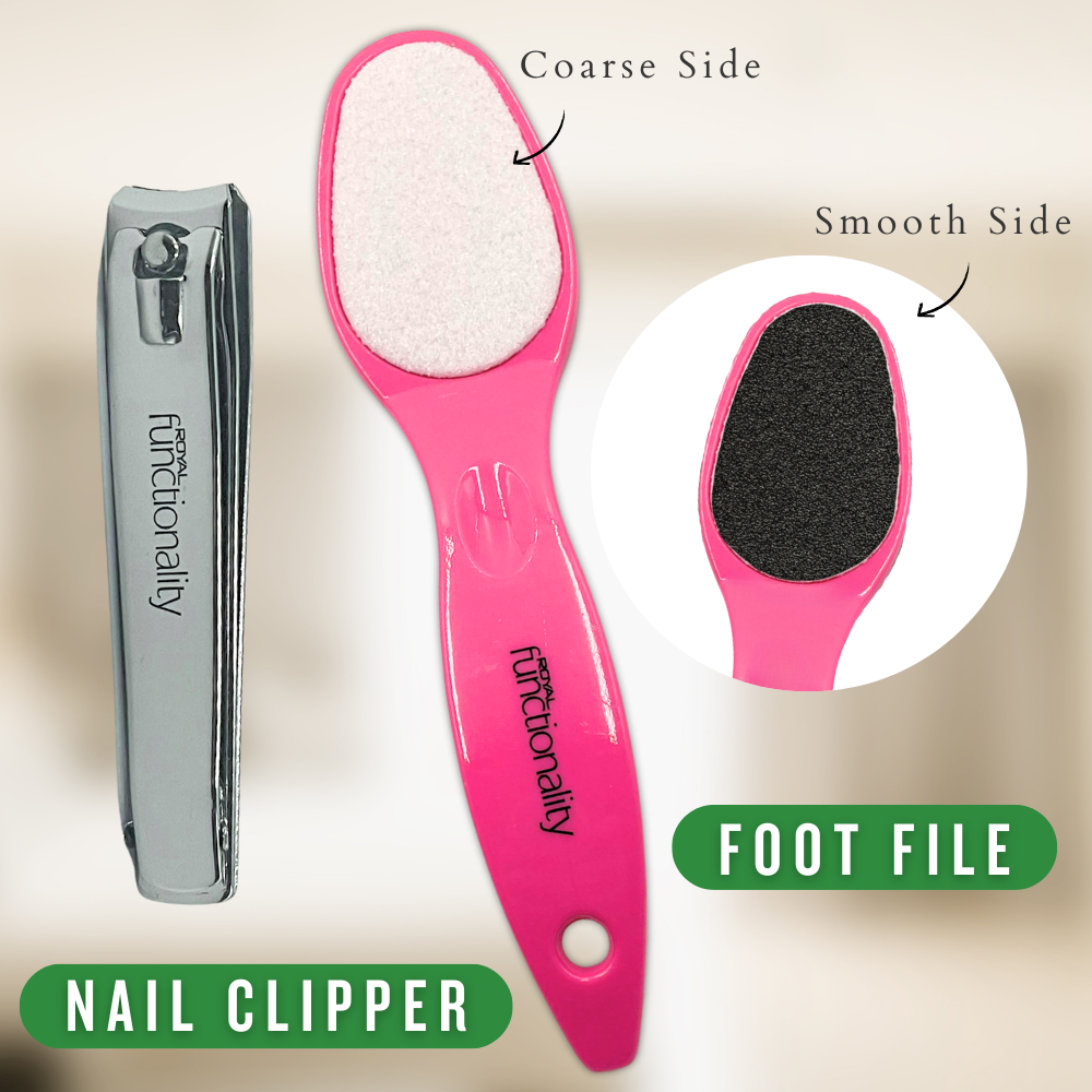 🦶 Foot File & Nail Clipper: For precision care, these tools help you smooth rough patches and trim nails with ease.