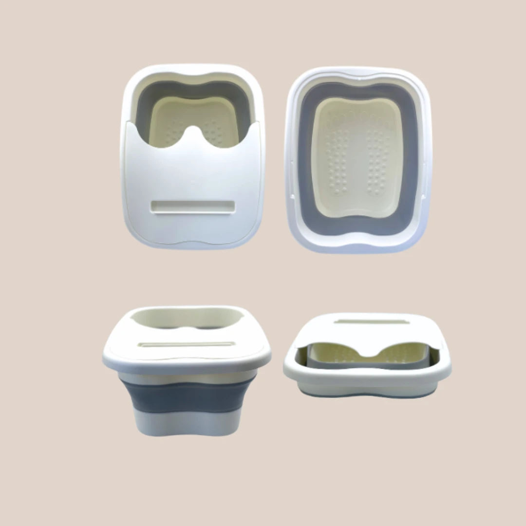 Compact, sturdy foot bath with non-slip base and detachable lid—perfect for small bathrooms or travel.