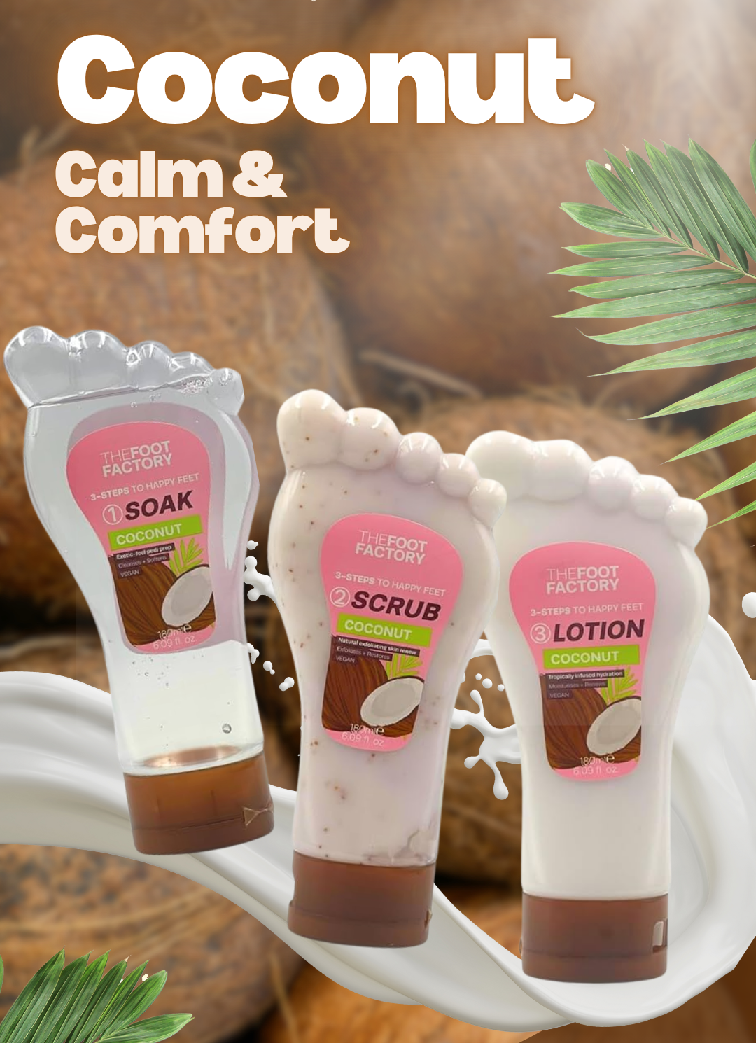 Moisturize and restore your feet with the hydrating blend of coconut. This lotion deeply nourishes, leaving your feet soft, smooth, and revitalized.