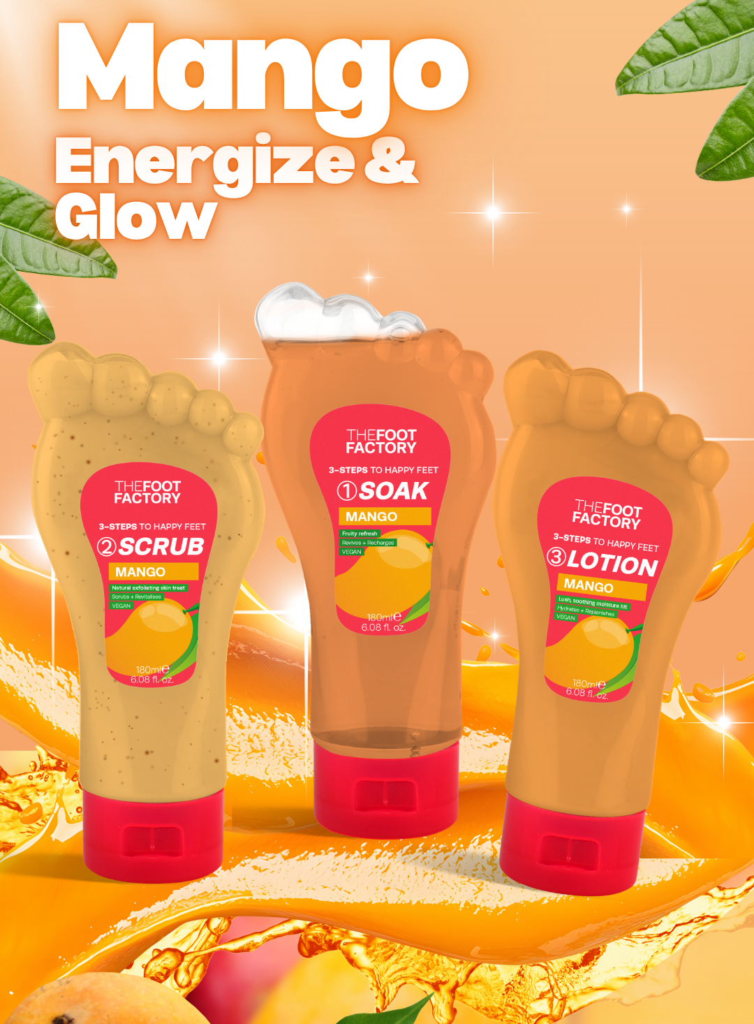- Foot Lotion (Mint / Coconut / Coffee / Mango) – Hydrating finish that softens and refreshes.