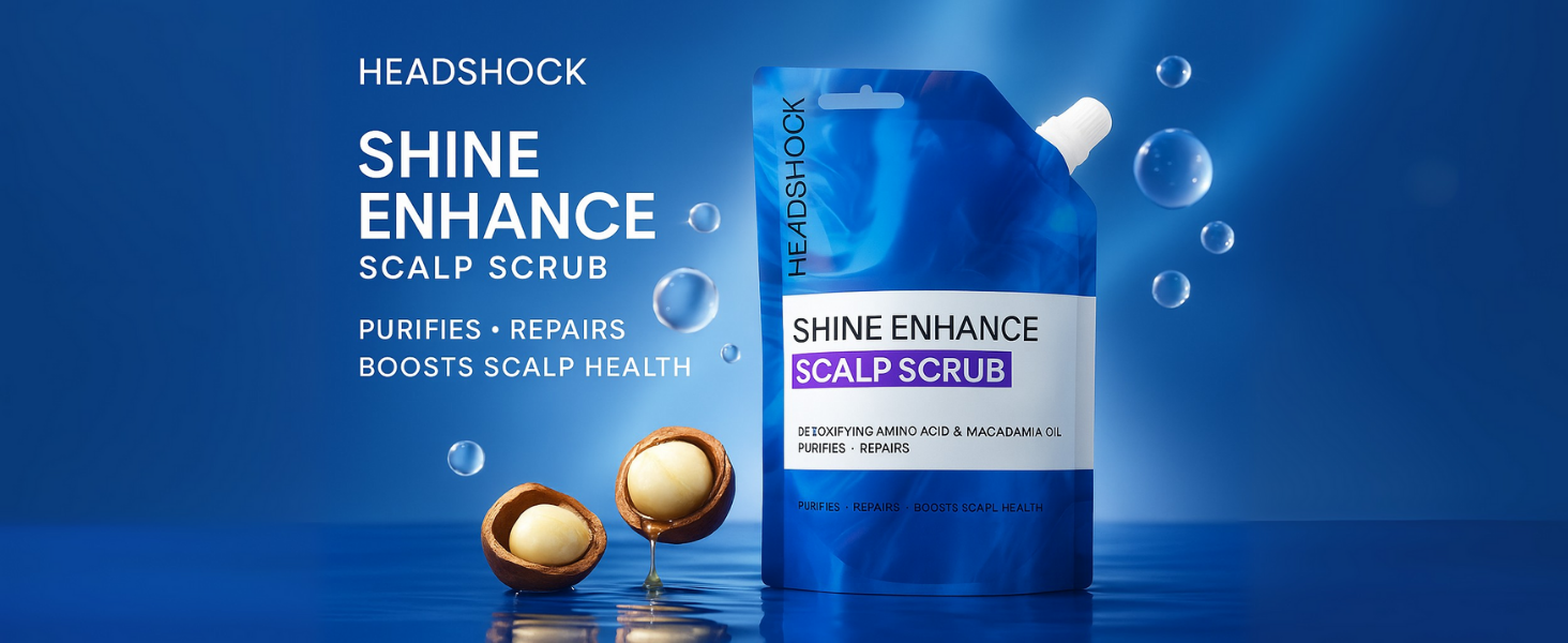Shine Enhance Scalp Scrub with amino acids and macadamia oil helps remove buildup, repair scalp, and support scalp health.