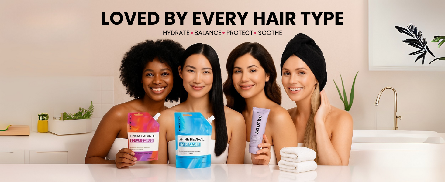 Give your hair the care it deserves with this complete at-home hair care set designed to nourish, soothe, and reset your scalp and strands. Featuring 3 premium Headshock treatments — the Hydra Balance Seaweed & Jojoba Scalp Scrub, the Shine Revival Avocado & Vitamin E Hair Mask, and the Scalp Soothe Treatment — this kit addresses dryness, frizz, product buildup, and sensitivity in just a few simple steps.